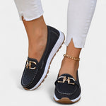 Mokasíny Ellie kombinují strukturovaný tvar s plochým klínkem a jemným povrchem. Kovová spona dodává čistý a elegantní detail, díky čemuž jsou tyto boty ideální pro každodenní nošení. Protiskluzová podrážka a prodyšný vnitřek zajišťují pohodlný krok – ať už v práci, nebo při volných procházkách.