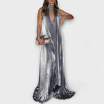 Pozvedněte svůj styl s našimi úchvatnými šaty po kotníky vyrobenými z luxusní metalické tkaniny, která se třpytí s každým pohybem. Ideální na večírky, tento elegantní bezramínkový design má hluboký V-výstřih s halter krkem, což zajišťuje, že vyniknete v jakémkoli davu.