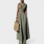 Šaty bez rukávů s plisováním a těsným střihem midi