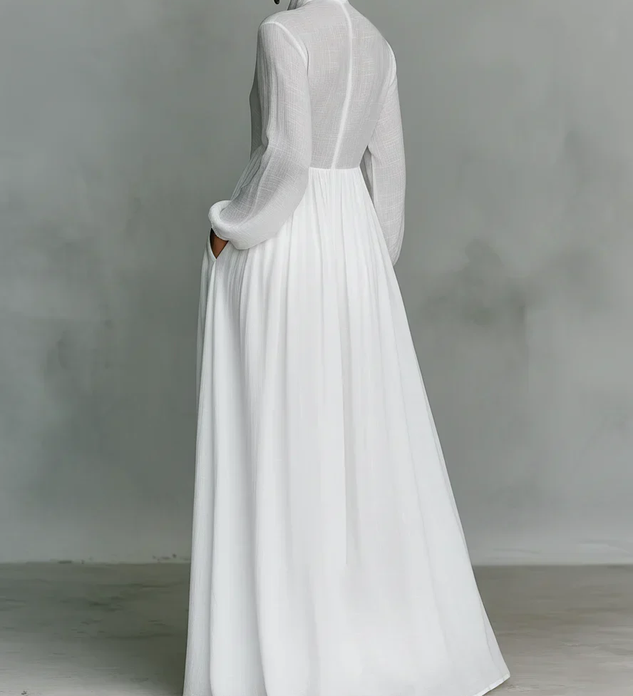 Alžběta – Bílé šaty s dlouhými rukávy, které zdůrazňují postavu