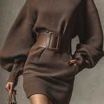 Cléa | Krátké pletené šaty s přiléhavým páskem