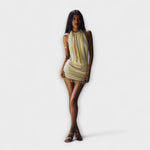 Prezentace Kylie Butter Mini Šatů – ohromující kombinace řemeslné elegance a moderního designu. Tento smyslný, sochařský kousek je navržen v New Yorku a ručně vyroben v Indii, což dodává jedinečný nádech vašemu šatníku.