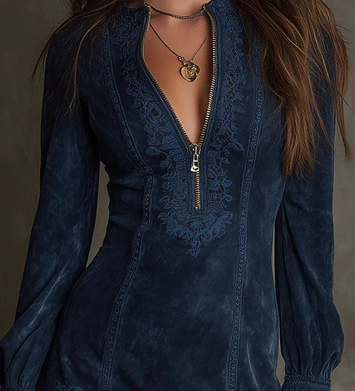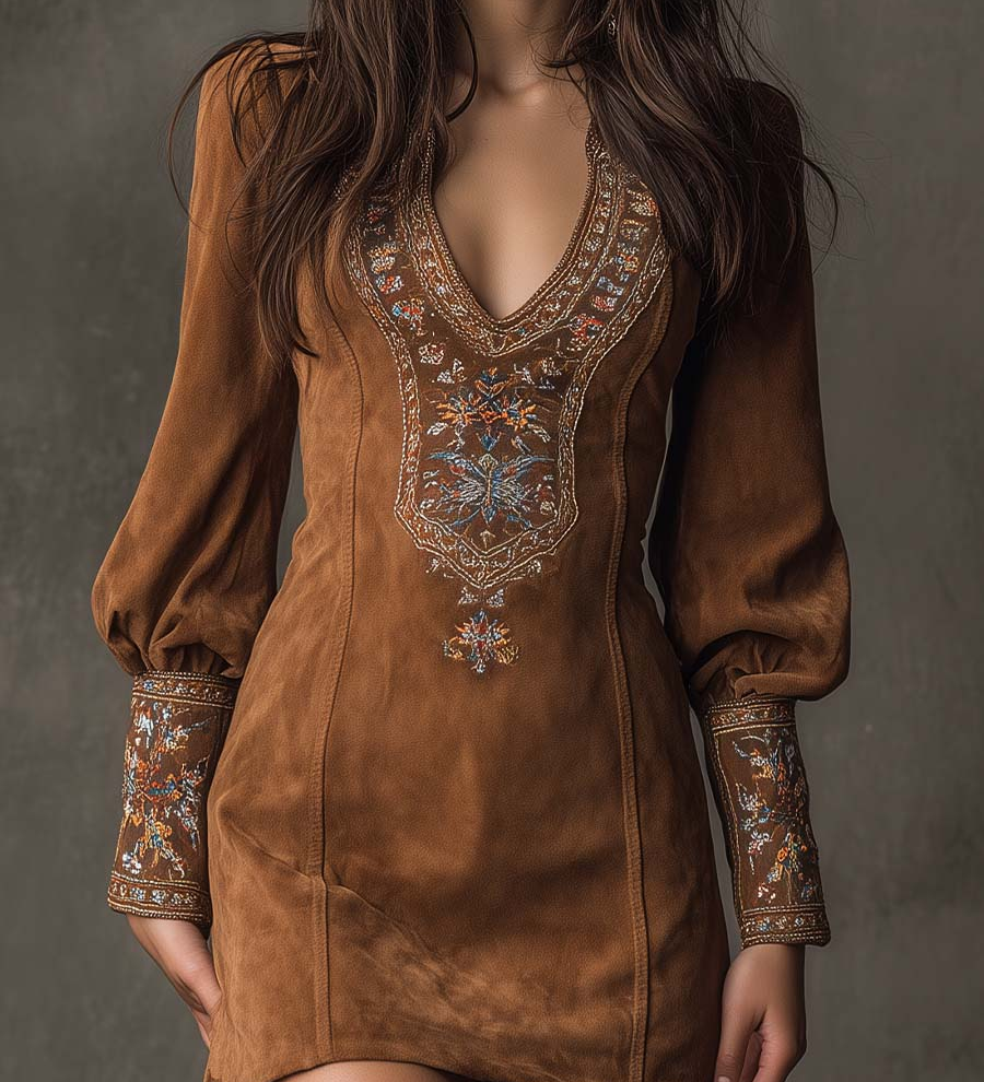 Miroslava | Mini šaty ze semišové kůže s výšivkou