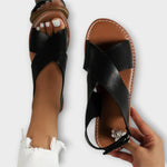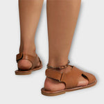 Tato hnědá řemínková sandály se vyznačují svým jednoduchým, moderním designem a současně nabízejí vynikající pohodlí při nošení. Křížený přední pásek zajišťuje stylový vzhled, zatímco nastavitelný suchý zip na patě poskytuje bezpečné uchycení a snadné obouvání. Plochá podrážka s jemnými kontrastními švy dělá z těchto sandálů ideálního společníka na každý letní den.