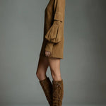 Aneta | Volné mini šaty ze semiše s vysokým límcem