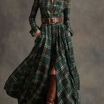 Beatrice | Dlouhé kostkované šaty s páskem