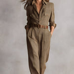 Hnědé kalhoty s texturou a kostkovaným vzorem, praktickými detaily a elegantním a praktickým vzhledem, ideální jak do práce, tak pro stylový každodenní look.